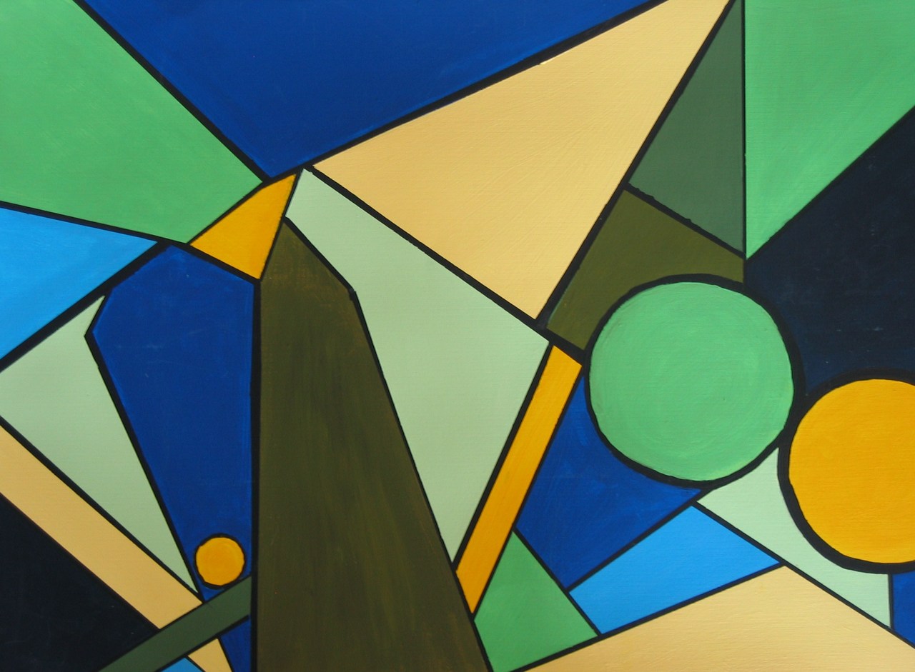 Abstract Geel Blauw Natuur Bomen Geometrisch Goen