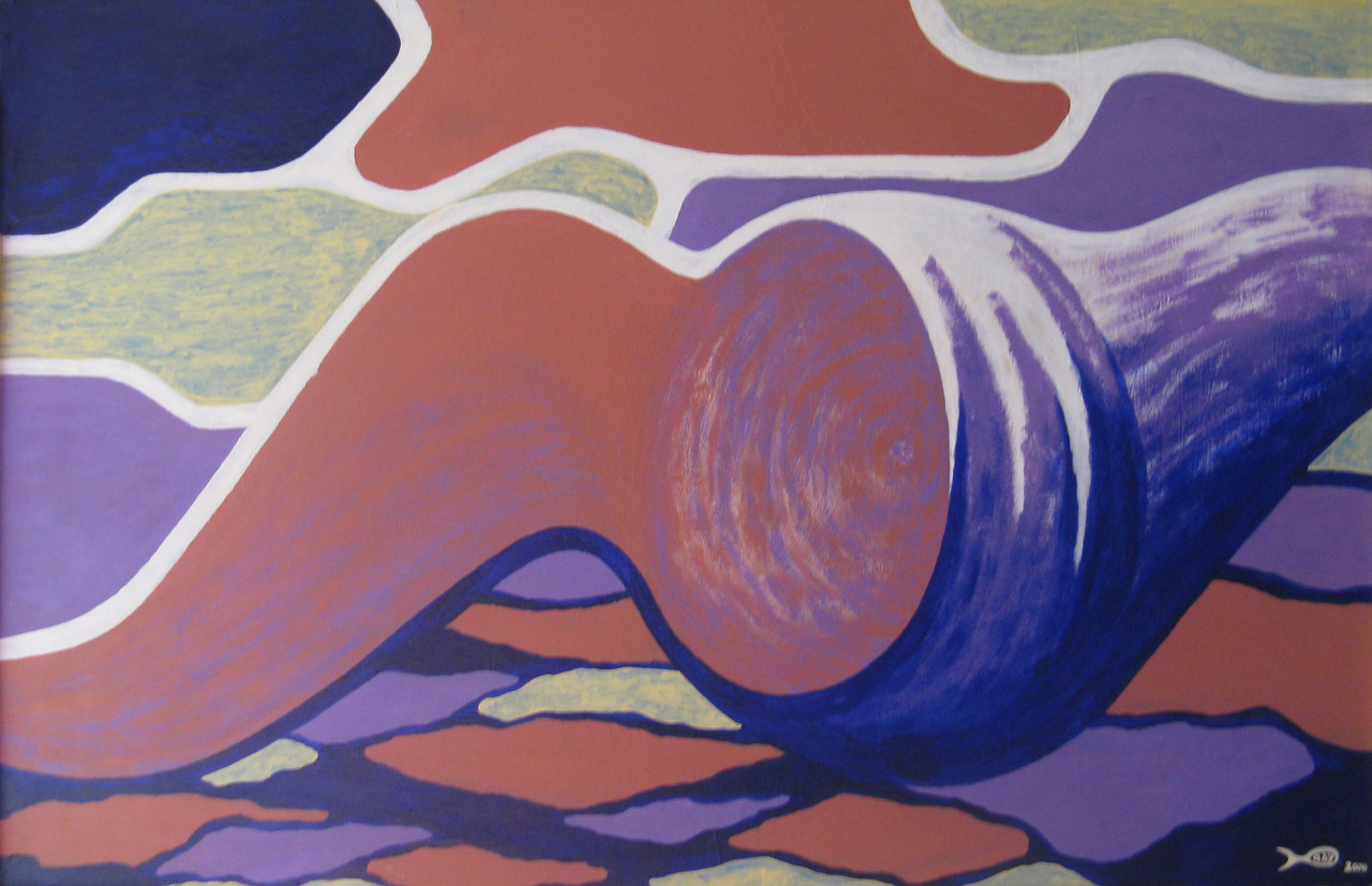 Abstract schilderij, de muziek vertaald naar beeldtaal.