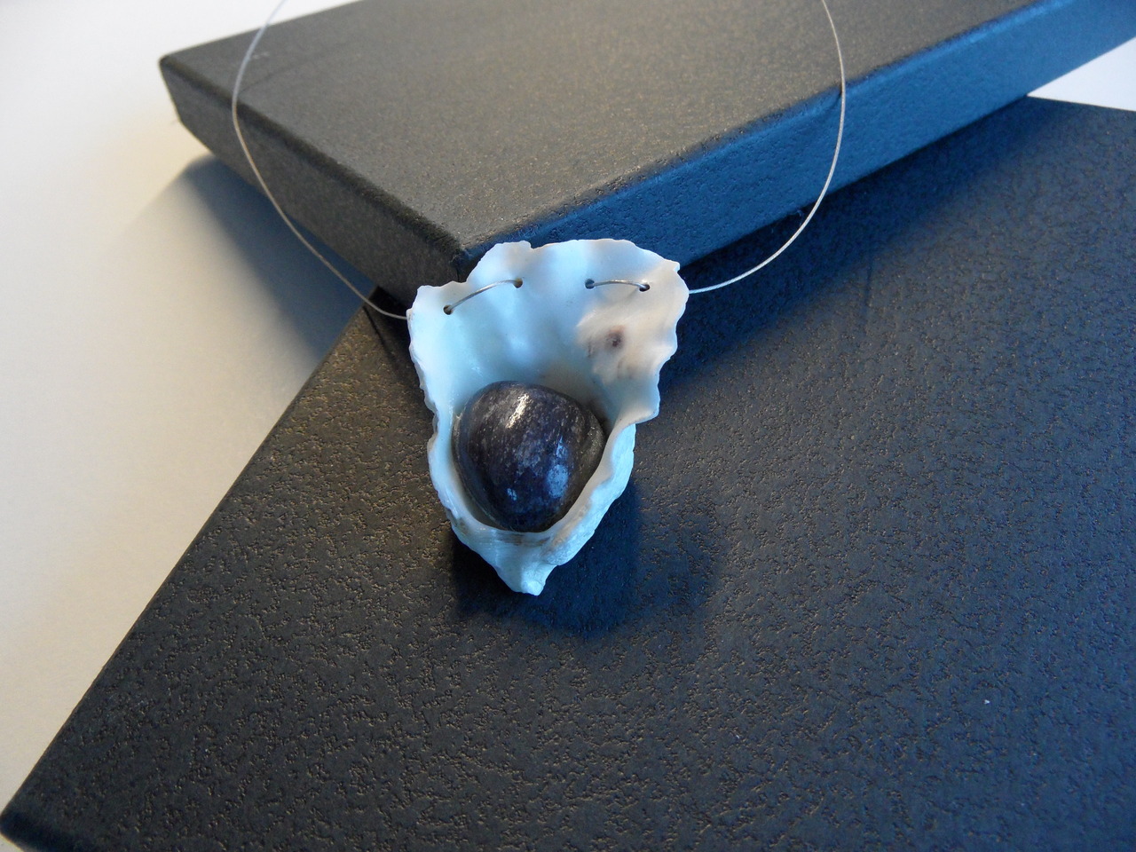 Schelp met verzonken donkerblauwe mineraal