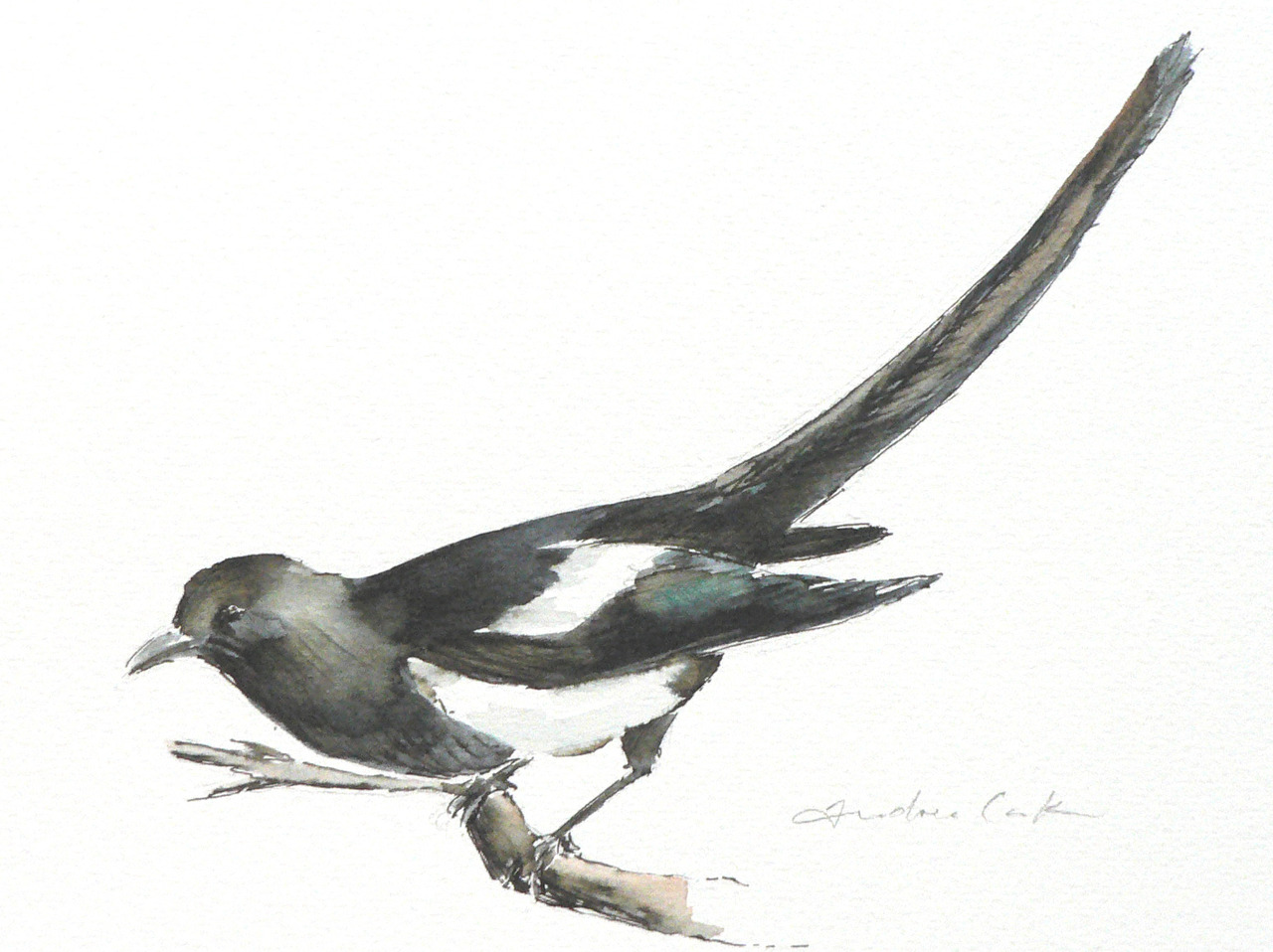 Zwart Vogel Aquarel Inkt Bird Ekster Magpie