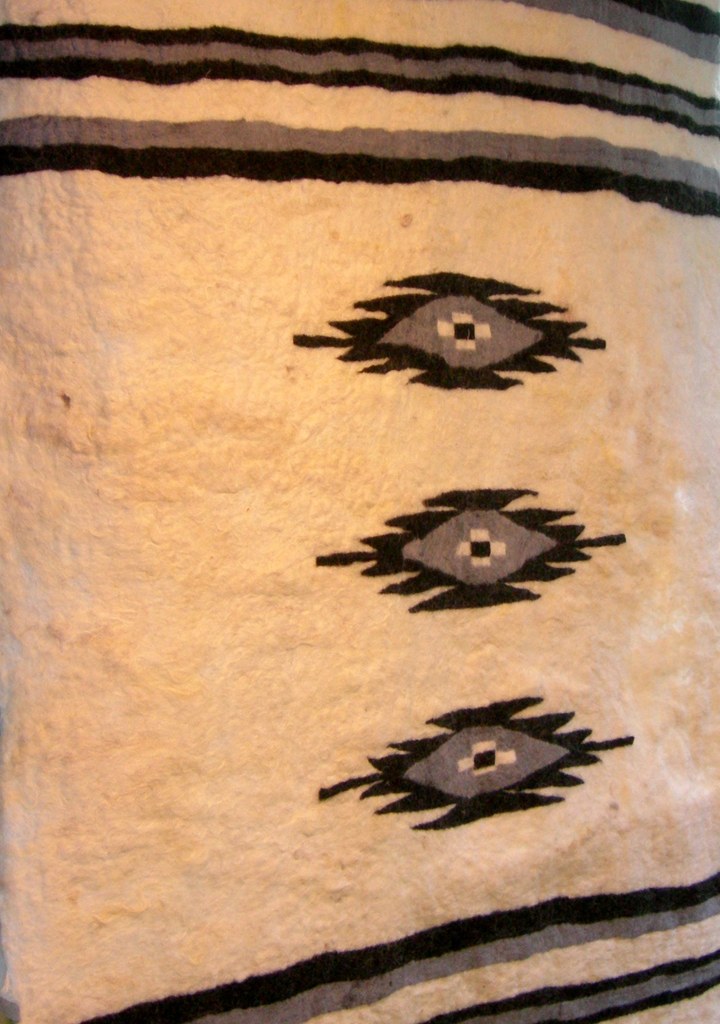 vilten wandkleed, inspiratie vanuit paardendeken 1910 Chimayo indianen