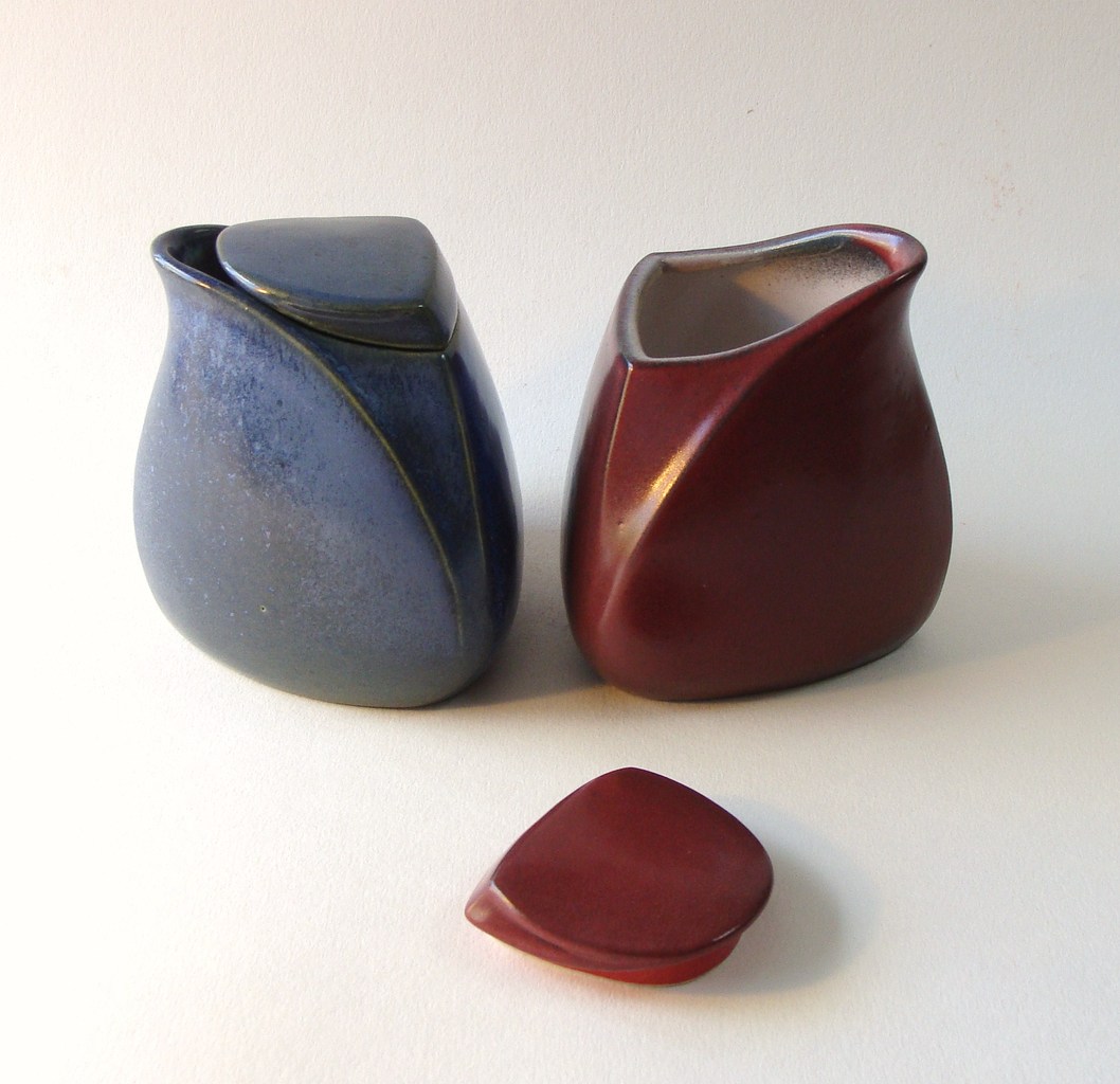 organisch gevormde suikerpot, moet gevolgd worden door een gelijkvormig melkkannetje. Ook een bijbehorend keramisch lepeltje volgt nog.