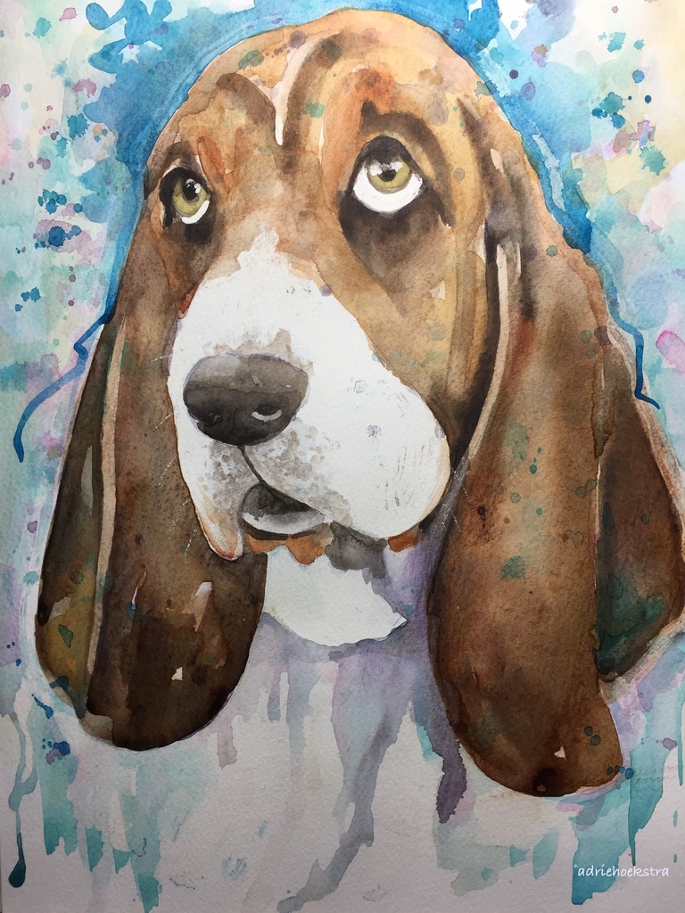 Basset Hond Woef Aquarel