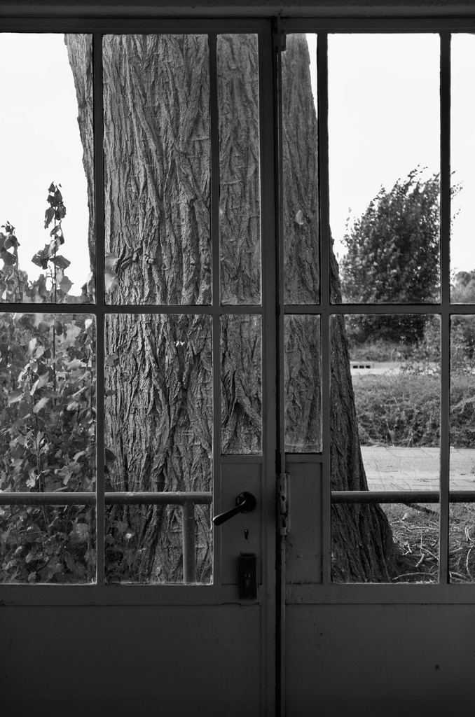 Boom Deur Uitzicht Ramen Deventer Zwartwitfotografie Stadsfotografie Silo Fotografie