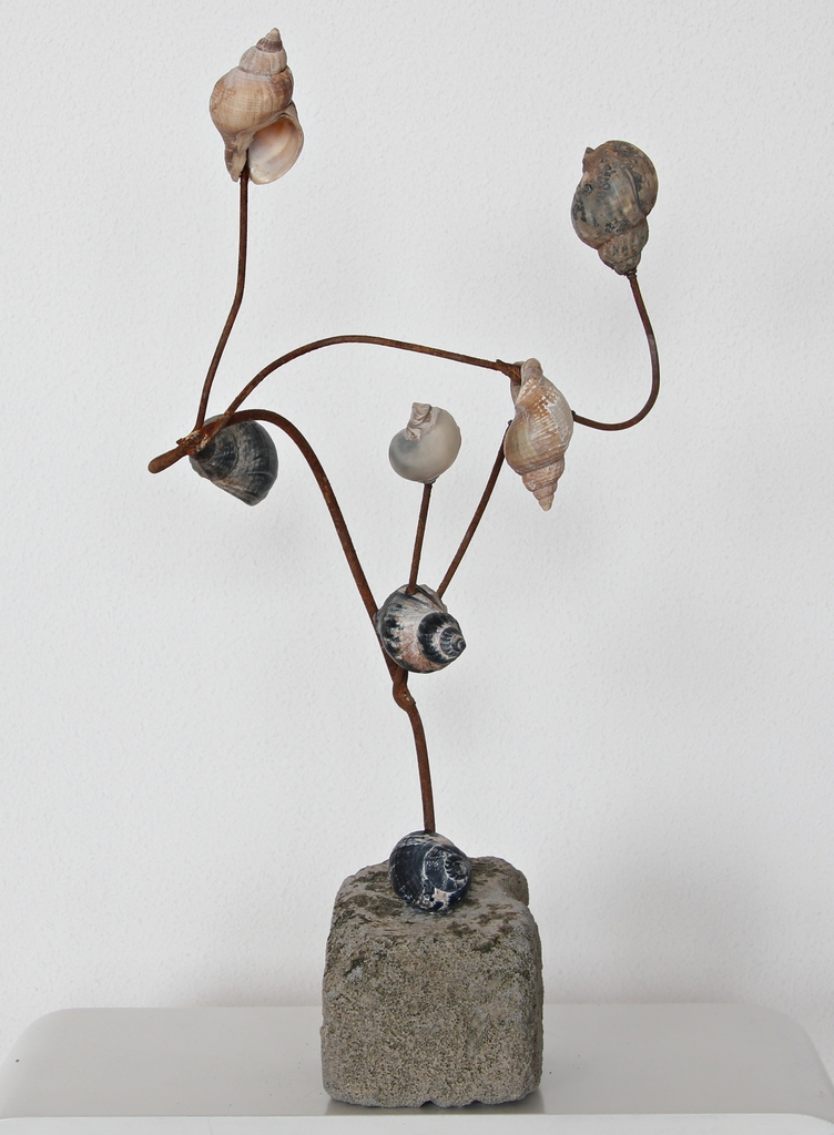 nieuwe tijd geeft ruimte voor creatieve uiting in het scheppen van sculpturen en wandobjecten uit gejutte strandvondsten en geroest metaal