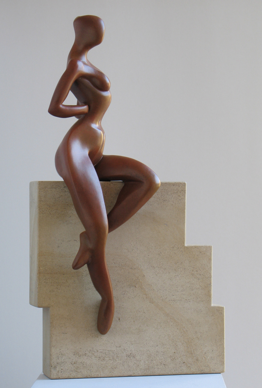 Beeld: gepatineerd keramiek; Sokkel: Frans kalksteen