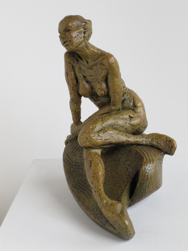Groen Vrouw Naakt Bruin Realistisch Zittend Patina Keramiek Olijf