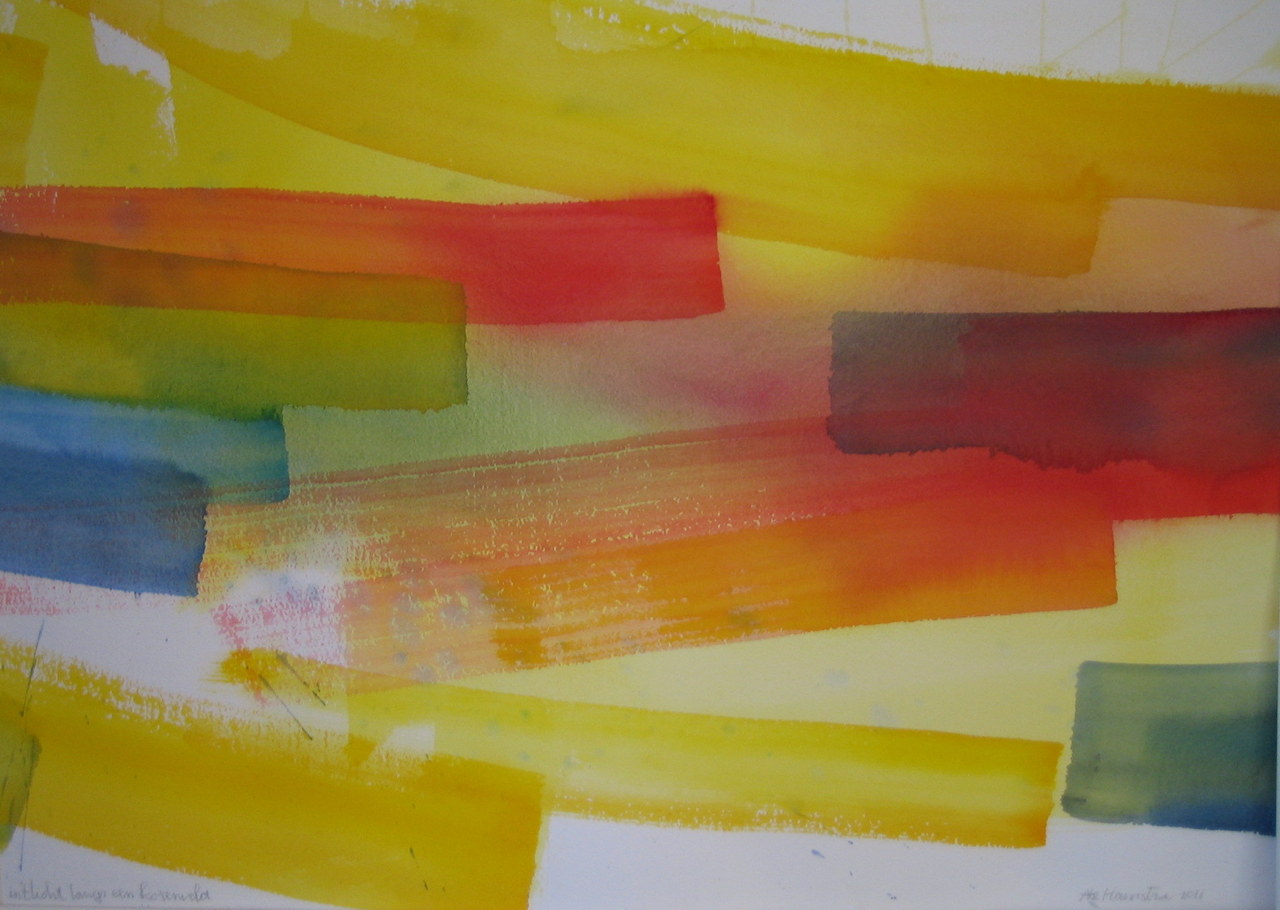 grote banen geel hier en daar een andere kleur geschilderd in brede banen : KORENVELD