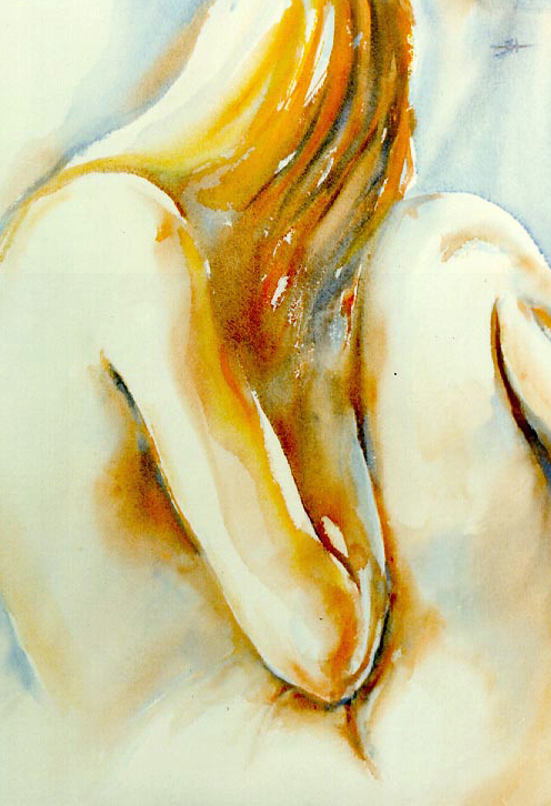Aquarel Naakt Vrouw Oranje Groen