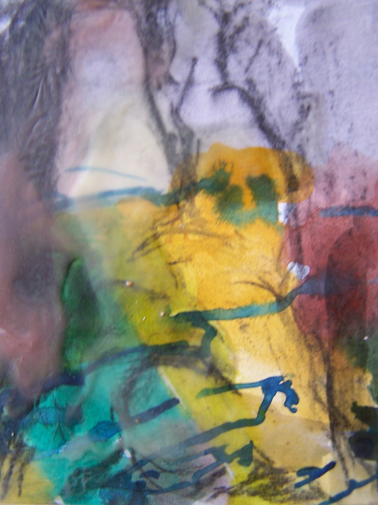 Aqurel op papier. Gemaroefleerd op plank. Impregneerd met bijenwas.