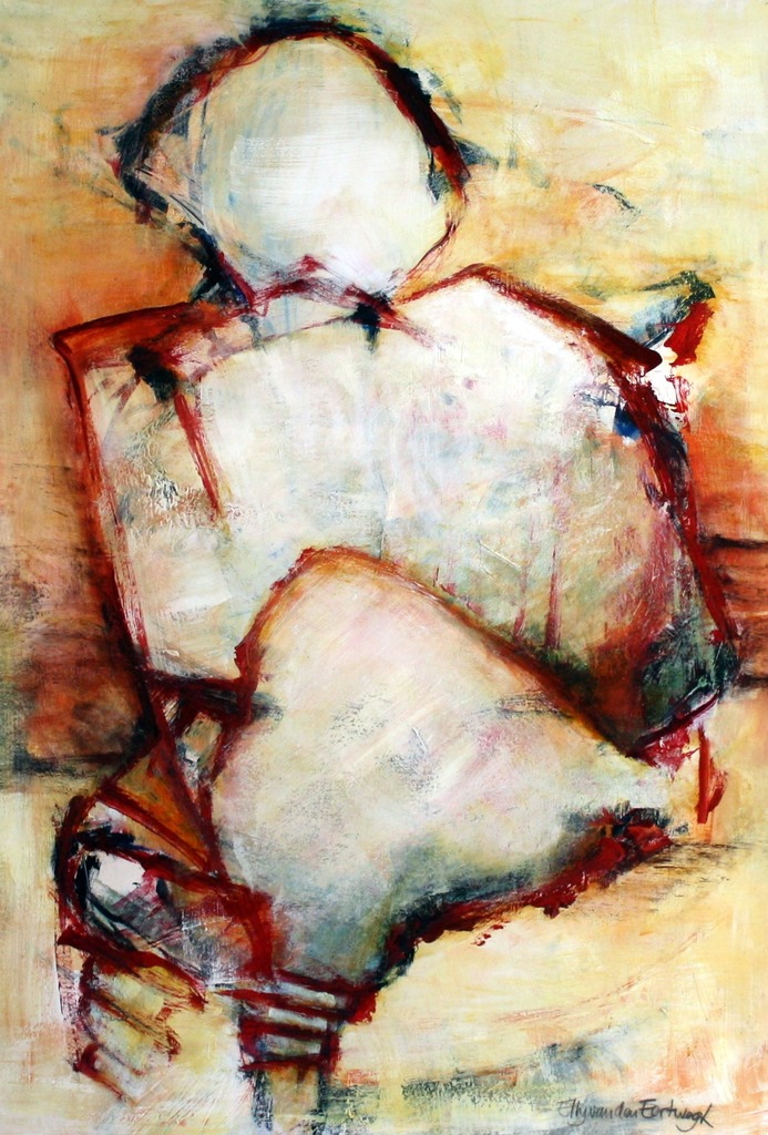 geschilderd met acryl verf, op zuurvrij karton, geinspireerd door n zittend figuur op n terrasje...schetsmatig..