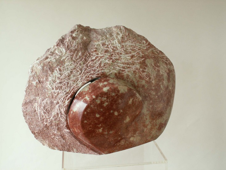 Beelden en schilderijen. Beelden voor binnen en buiten, voornamelijk in steen. Meestal abstract, vaak symbolisch. Schilderijen in de frescotechniek. Kleurrijk en helder.