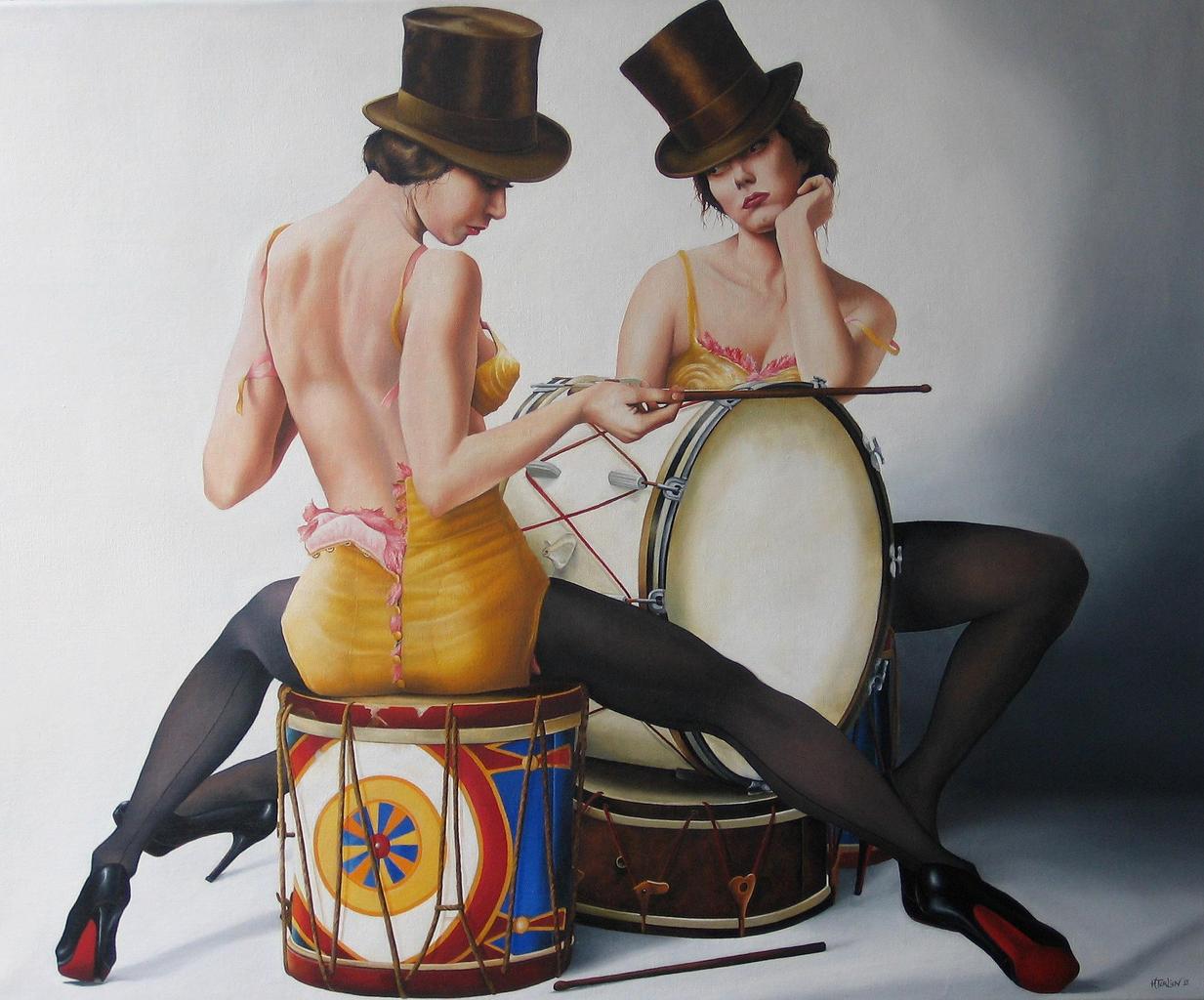 Wit Vrouwen Groep Rood Geel Blauw Yellow Twee Blue Women Red Two Hoed White Drums Duo Hat Group Burlesque