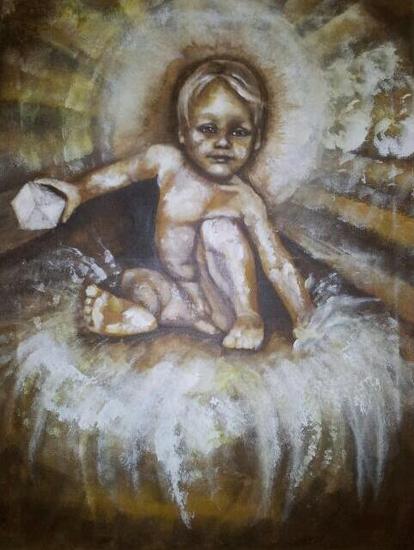 Dit schilderij symboliseert de geboorte van "de Nieuwe Tijd". The Age of Aquarius. Het kind houdt een kristal in zijn hand. Kristallen kunnen energie doorgeven. In het nieuwe tijdperk gaan we onze vrouwelijke kant ontwikkelen; intuitie, sensitiviteit , samenwerking, liefde en harmonie . We gaan meer vanuit het hart leven i.p.v. het brein. Licht versus duisternis Prijs is exclusief 6 % BTW