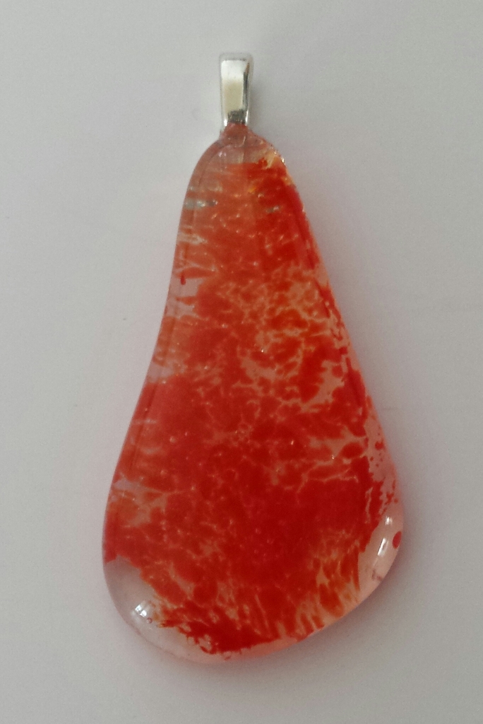 Glashanger van transparant glas en rood glaspoeder, gemaakt in een hotpot