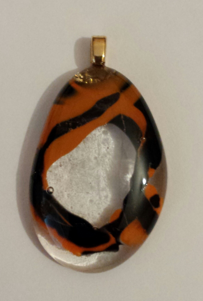 Glashanger van transparant glas met oranje en zwarte stringers.
