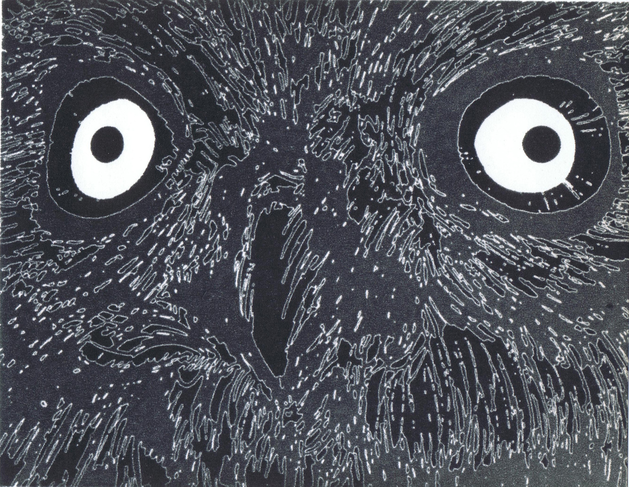 Deze uil is het product van een fotoserie uit de jaren 50 vorige eeuw. Het lijkt hoe ongelooflijk ook op een computerproduct dat het beslist niet is.