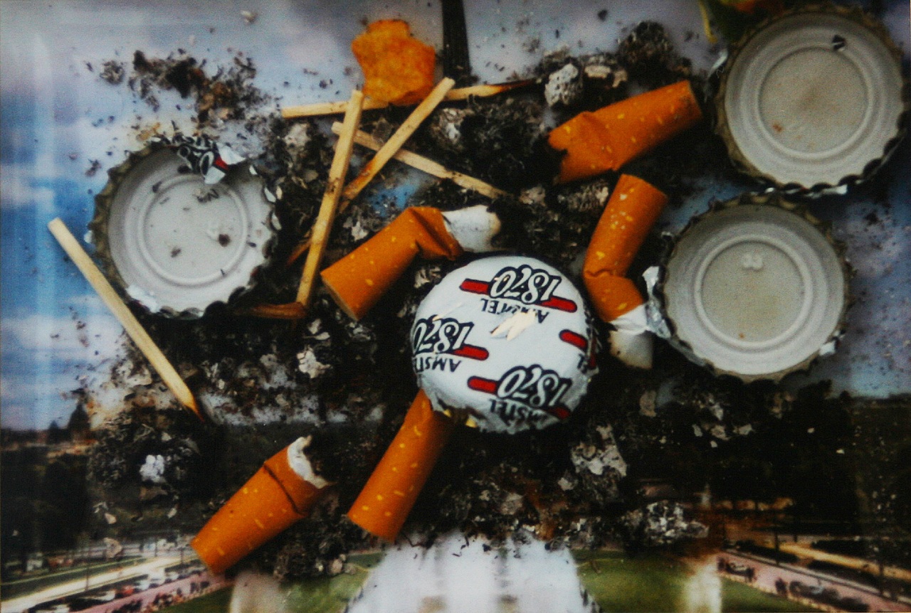 Blauw Frankrijk Hemel Vuur Eiffeltoren Asbak Sigaret As Lucifer Dop Vies Peuk Kroonkurk Cosmopoliet