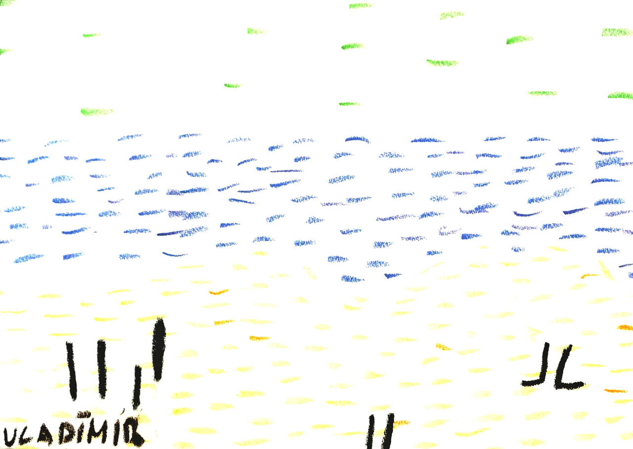 een tekening in olie-pastelkrijt. Met als motief, de kust. (met of zonder lijst te koop)