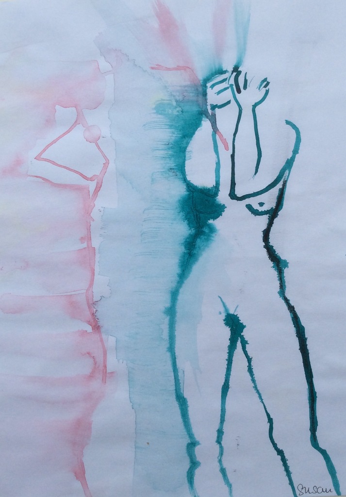 Blauw Groen Vrouw Woman Figuur Mens Inkt Turquoise