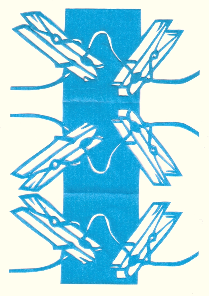Blauw Papier Waslijn Wasknijper Paper Cut Knipkunst Knipwerk Scherenschnitt