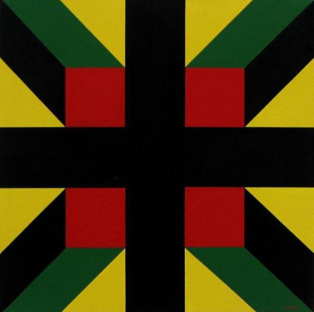 Geometrisch werk op doek: Kruisbalk 1 is onderdeel van een drieluik.