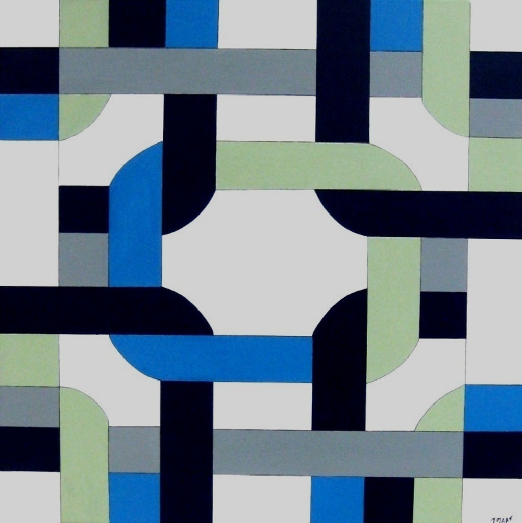 Lemniscaat scheepstouw. In juli 2012 was dit werk te zien in Hiva Oa Art Gallery in Lelystad. Het werk is gemaakt op het thema : Zuiderzeemuseum Enkhuizen. Omdat ik geometrisch werk maak is het voor mij vooral de " kunst " om het thema in geometrische vormen om te zetten. In het Zuiderzeemuseum zie je genoeg voorbeelden van knopen of zeemansknopen van touw. Voor mij was dat de aanleiding om een touw op doek te vlechten. Voor meer foto's en informatie kunt u een kijkje nemen op mijn Blog.