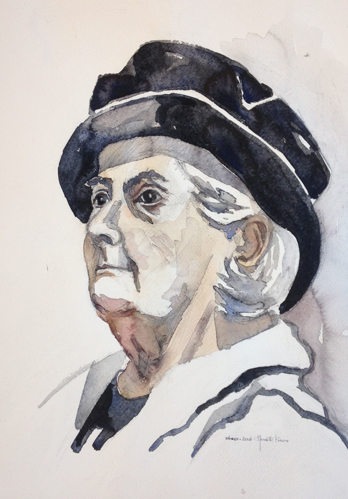 Inez, een ferme dame van 83 jaar. Aquarel. Werk is in particulier bezit.