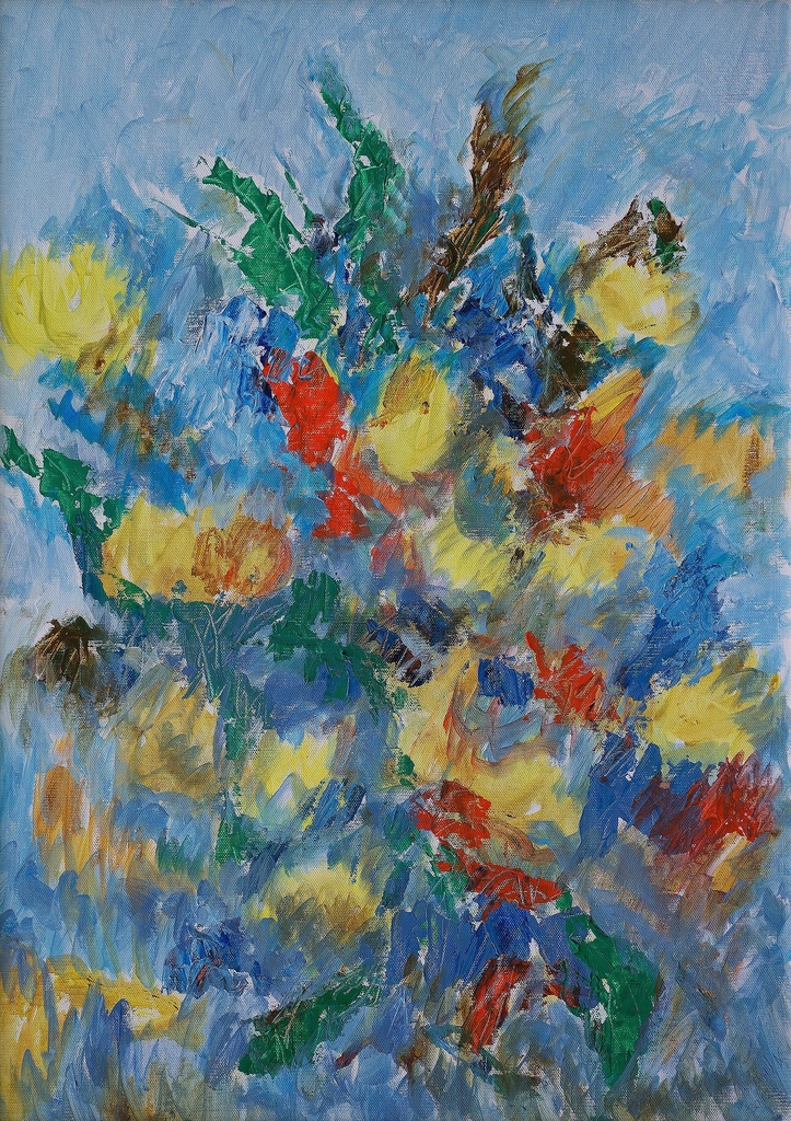 Oranje Geel Blauw Yellow Bloemen Blue Natuur Flower Flowers Lente Kleur Orange Boeket Impression Painted Acrylschilderij Schildersmes Floral Knife Palette