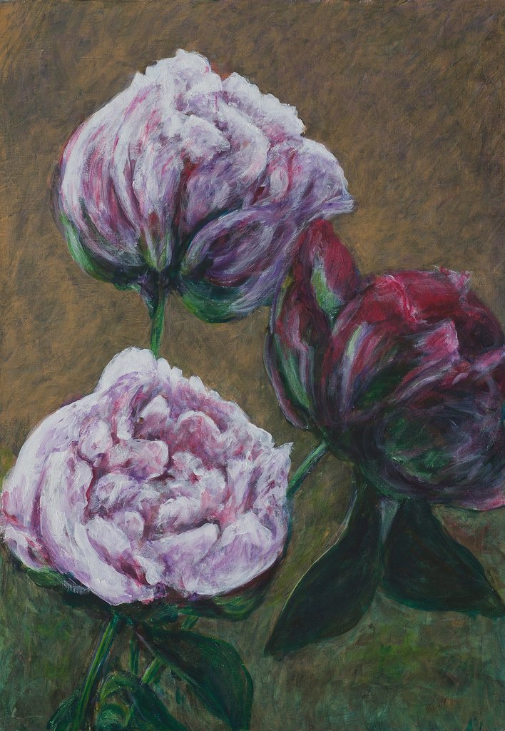 Rozen Doek Linnen Drieluik Acrylschilderij Linen Triptych Avondlicht Evening Linnendoek Pioenrozen Pioen Pioenen Eveninglight Peonies