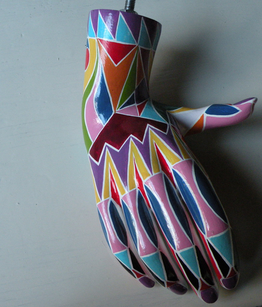 Kleurig beschilderde liftende hand .
