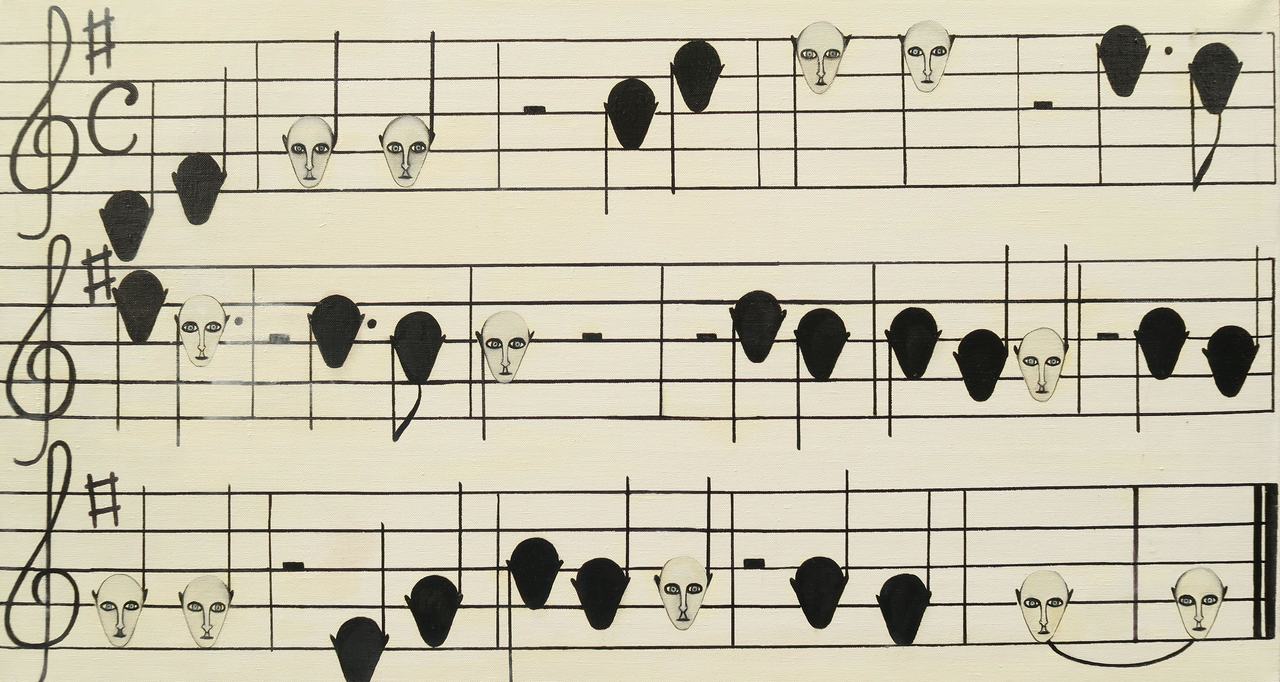Nadat ik "Dancing Faces" had gemaakt , kwam het idee in me op om de gezichten als noten te gebruiken in een bestaand muziekstuk. Een kleine variatie!