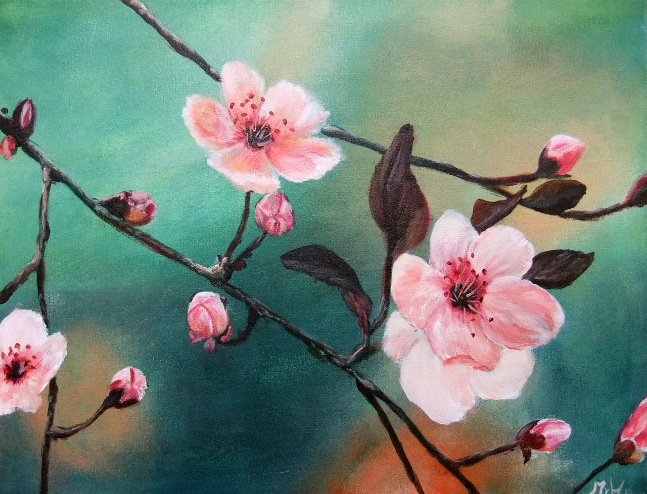 Rood Oranje Blauw Groen Bloemen Van Schilderijen Roze Bloesem Voorjaar Verjaardag Hoorn Bloesemtak