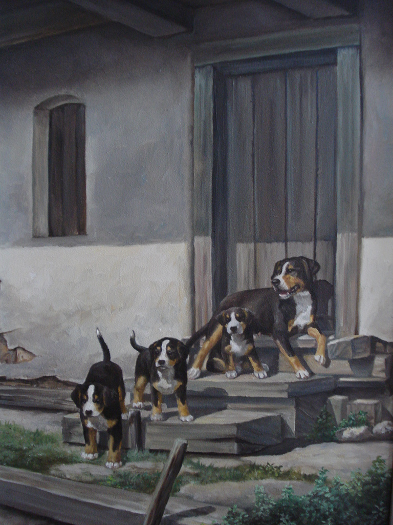 Art Olieverf Paneel Hond Grote Fine Zwitserse Senne