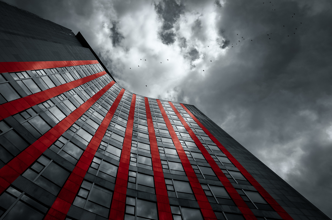 Surreeel Modern Rood Wolken Red Lucht Sky Birds Clouds Architectuur Architecture Surreal Dreigend Dramatic Ohra