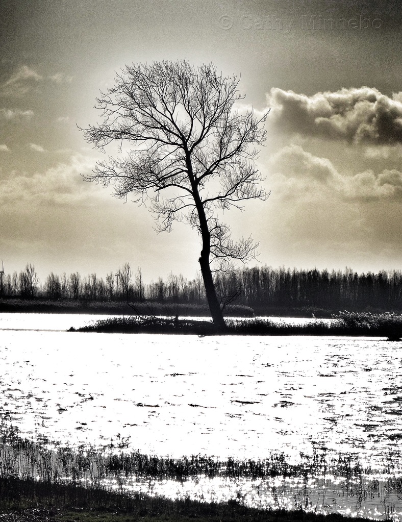 Een eenzame boom op het eiland Tiengemeten, Zuid-Holland Beschikbaar: 5