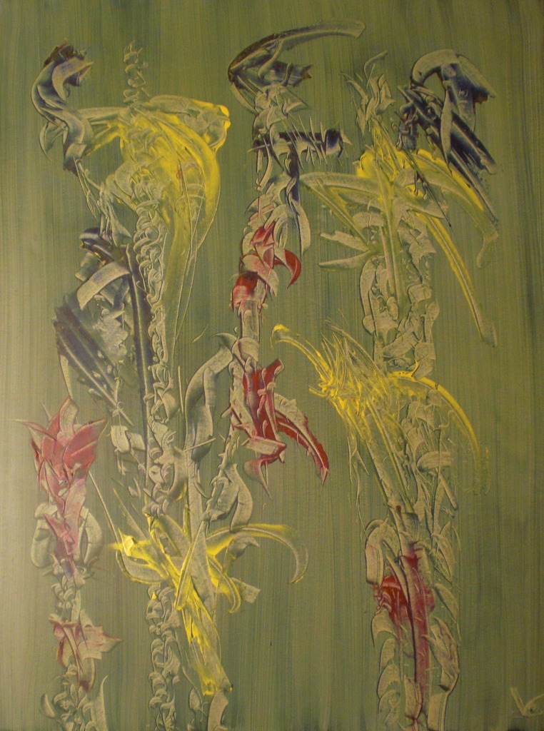 Abstract Acryl Groen Bloemen Green Acrylic Flowers Insecten Insects