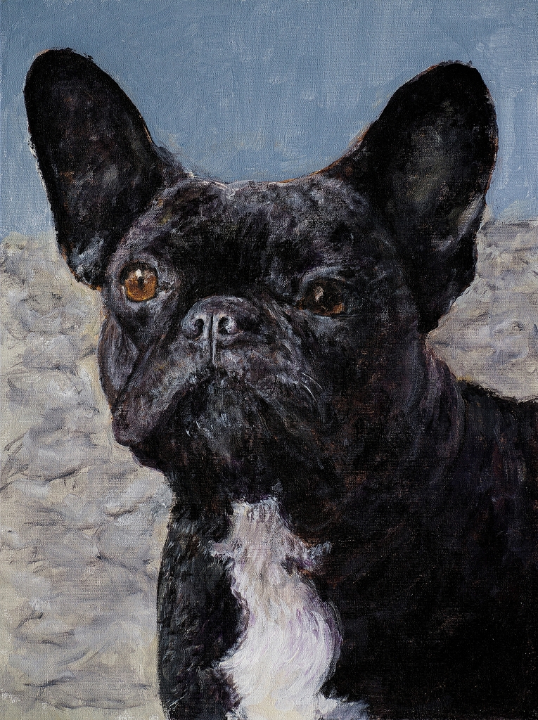 Franse buldog, hond Heidi. Dieren geschilderd op canvas met Tri-Art acrylverf