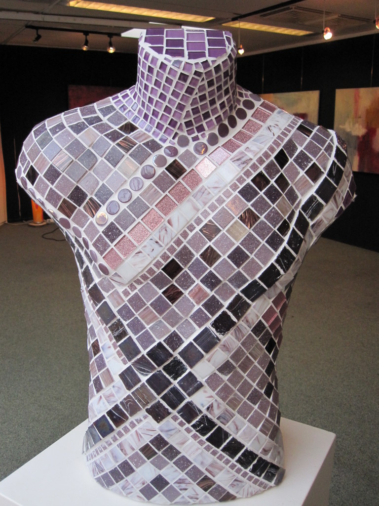 Mijn naam is Peter de Keijzer. Ik beplak kunststof torso's met glasmozaïeksteentjes.