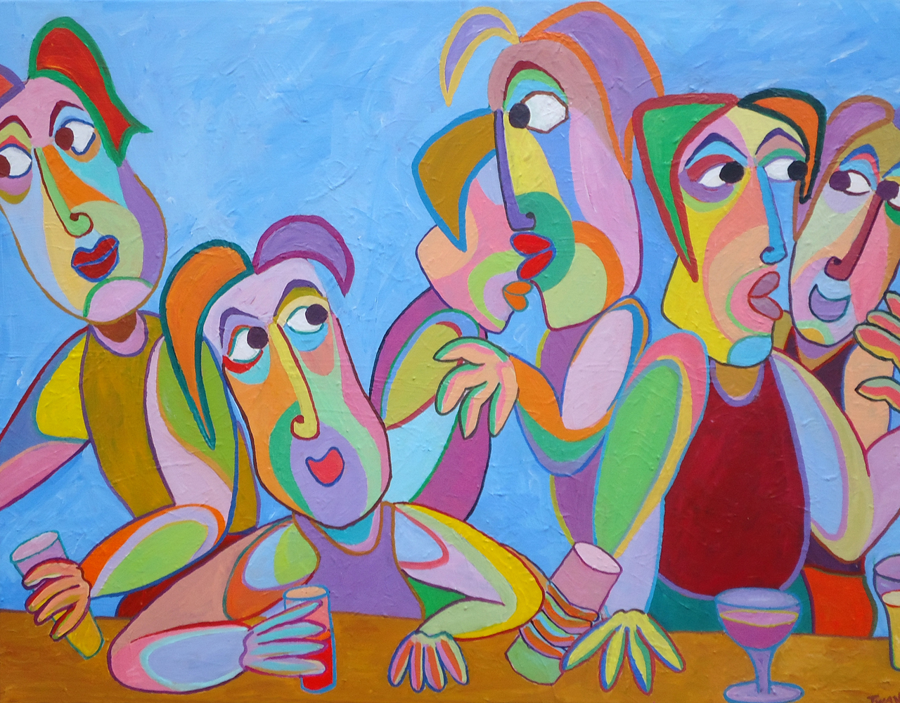 Schilderij Blauw Man Blue Kunst Painting Kleur Mannen Kubisme Kroeg Pub Color Men Cubism Hombres