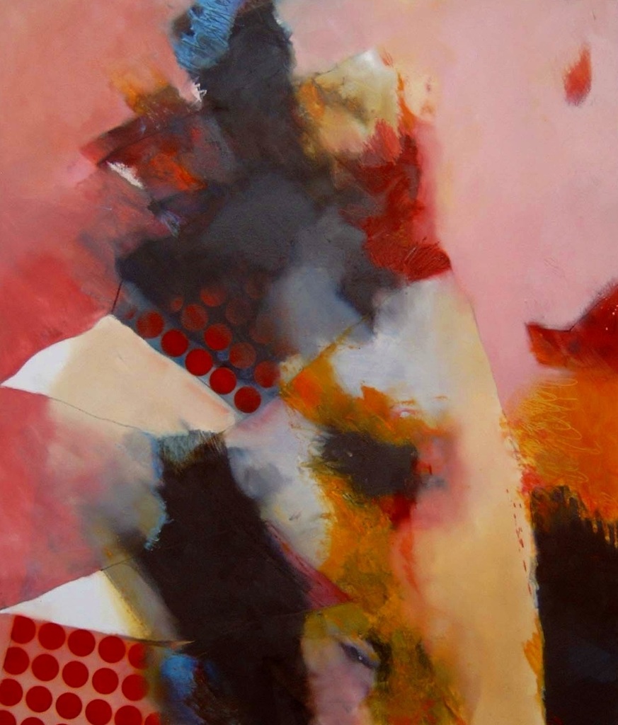 Abstract, expressief met iets figuratiefs. In ieder geval kleurrijk, spetterend en het knalt van het doek af.