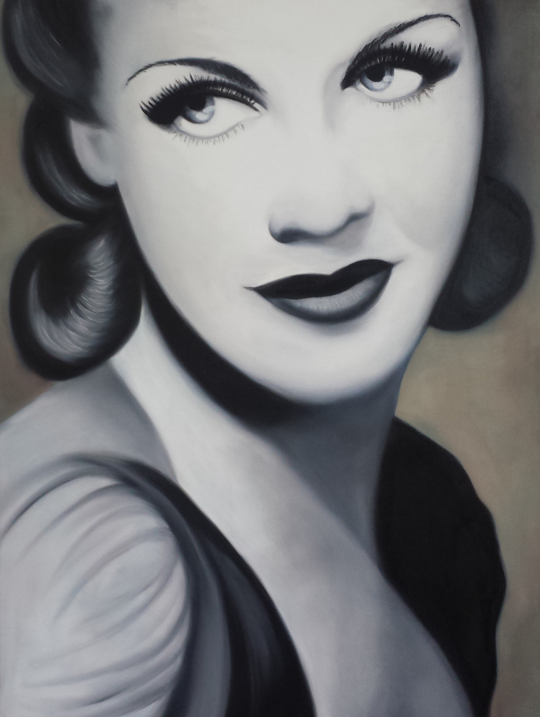 Schilderijen in olieverf. Vrouwelijke schilderijen met een voorkeur van close-up fragmenten, gebracht in een realistische stijl of in een popart stijl.
