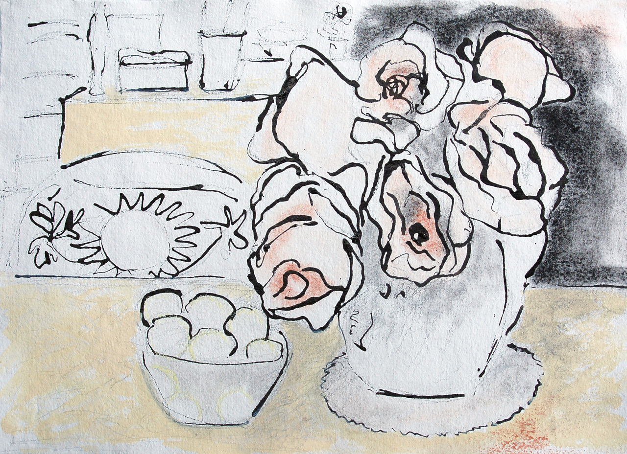 Bloemen Stilleven Fruit Pentekening