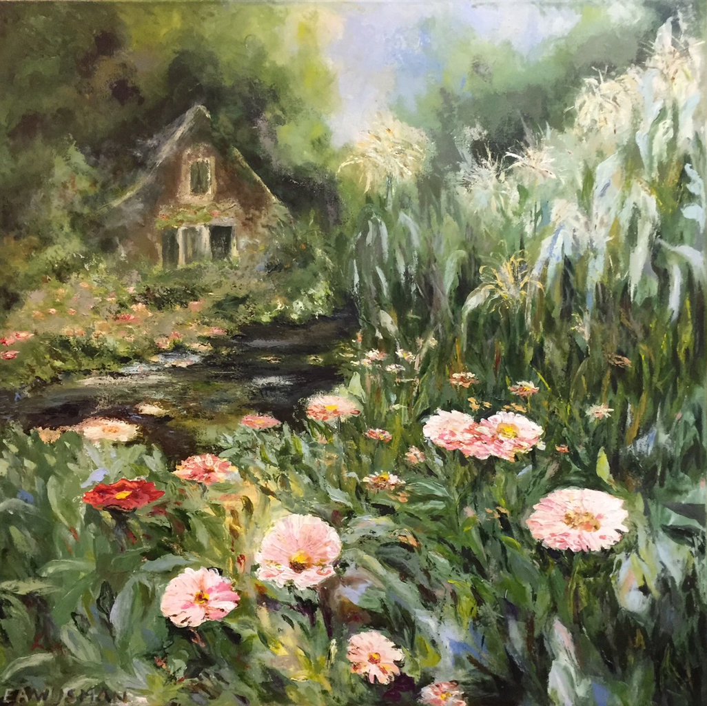 Erica Wijsman (1957). Geboren in 't Gooi. Was jaren werkzaam als galeriehoudster. Is afgestudeerd als grafisch vormgeefster en heeft zich de afgelopen zeven jaar geschoold als Kunstzinnig Dynamisch Coach. Ze werkt in haar atelier met olieverf, acryl en mixen media op paneel, papier en doek. Voorheen bestond haar oeuvre uit bloemen, landschappen, vogels en portretten. Tegenwoordig richt ze zich vooral op het weergeven van interieurs. Het atelier staat in Boskoop naast het Rozarium. U kunt er naast het bekijken of aanschaffen van haar schilderijen en tekeningen ook terecht voor een workshop of kunstzinnige training. Boskoop 2019.