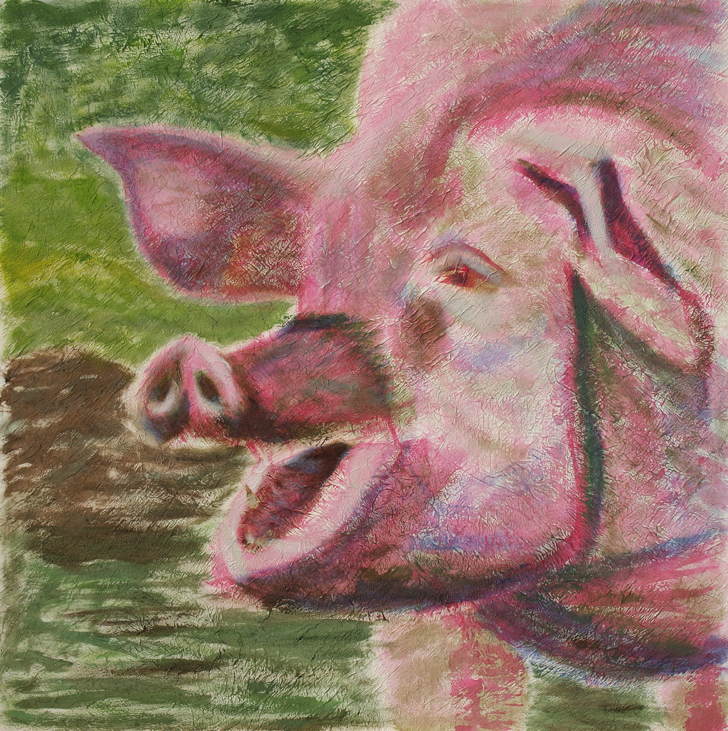Lachend varken in de modder