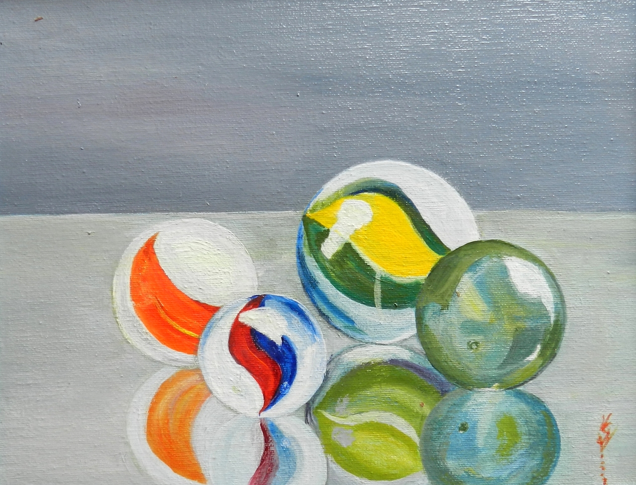 Knikkers op een glazen tafel.