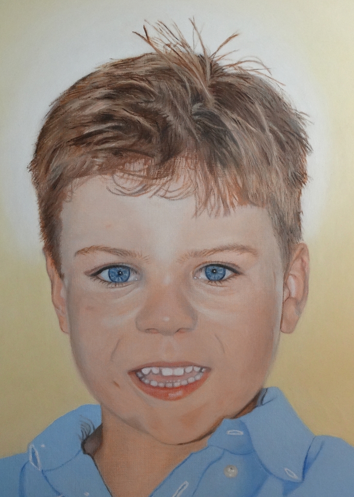 Dit was een opdracht die ik van de vader van het jongetje kreeg. Dit portret van zijn zoon was een Kerstgeschenk voor de moeder. Enig om te doen en een uitdaging omdat dit de eerste keer was dat ik een klein kind schilderde.