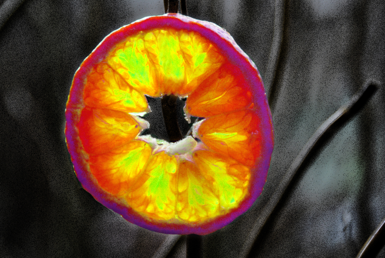 Het doorschijnende van een schijfje mandarijn inspireert me