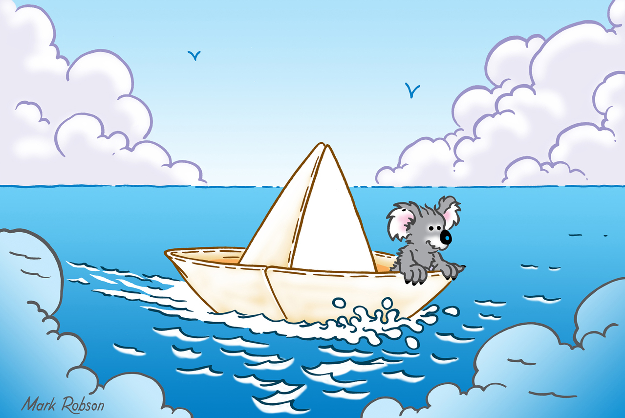 Voor de Killer-Koala volstaat een traditioneel avontuur niet meer, daarom vertrekt hij op een queeste, een grootse zoektocht gevuld met verwondering. "Het lot dat meestal in nevelen gehuld is, onthult zich aan de stoutmoedigen. Indien ik onverwacht aan mijn tocht begin, dan volgen de openbaringen, de verrassende wendingen en ontmoetingen vanzelf." denkt hij. - DE WONDERLIJKE VOUWBOOT: De boot was gebouwd met het duurzaamste handgeschept papier. Elke vezel ervan was persoonlijk geselecteerd door de zeven magiërs van het eerste rijk der slapende draken. Zijn oppervlak was gevrijwaard van elke denkbare letter, geen geschreven woord beperkte zijn mogelijkheden. Het vouwsel herbergde door zijn wonderlijke materie zo een ongekende kracht, dat het in staat was de breuklijnen van het lot te bevaren en zijn occasionele passagier naar die plaats te voeren, die bepalend is voor diens unieke avontuur.