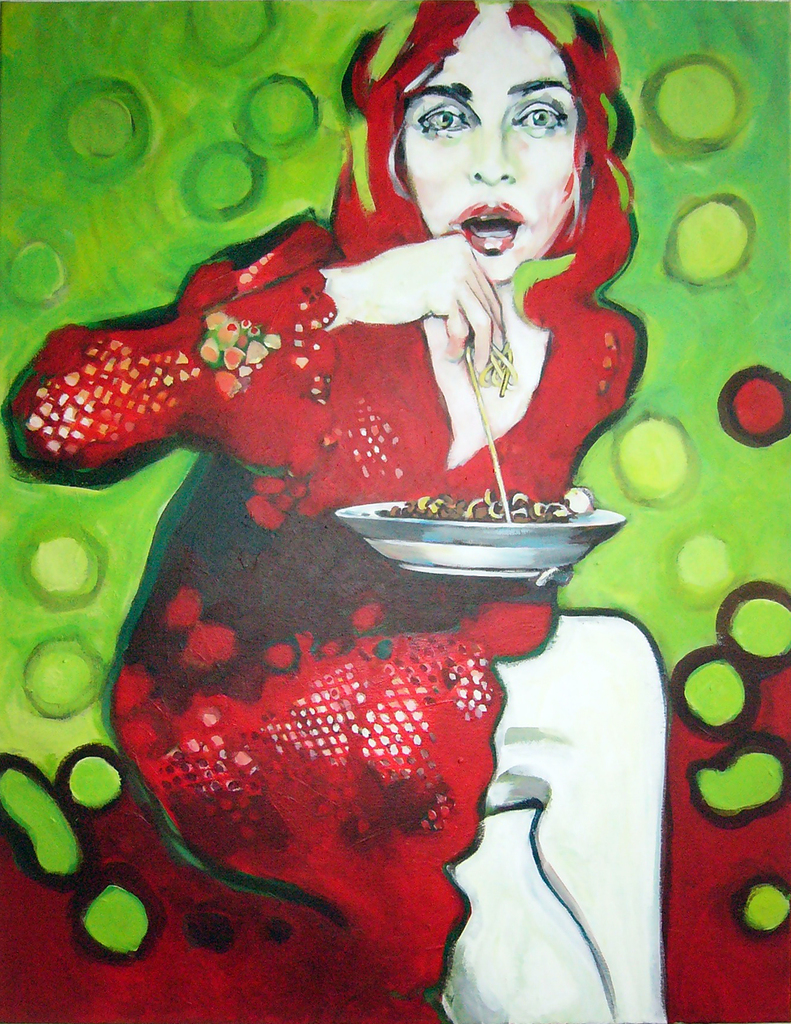 Rood Groen Vrouw Woman Red Green Spaghetti Punt Lunch Dot Patdumez